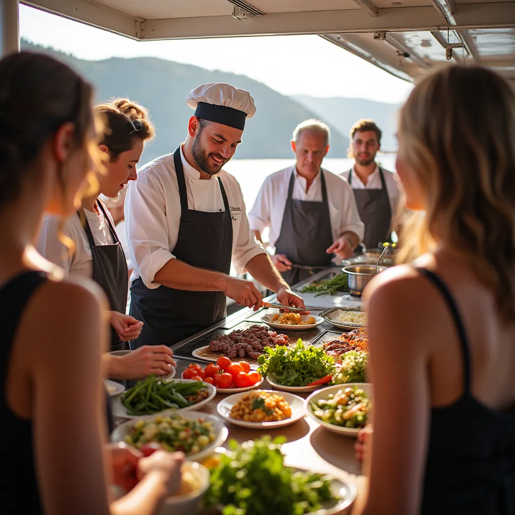 Nuestro servicio de catering a bordo asegura que disfrutes de deliciosas comidas y bebidas mientras navegas. Trabajamos con los mejores chefs locales para ofrecerte lo mejor de la gastronomía española.